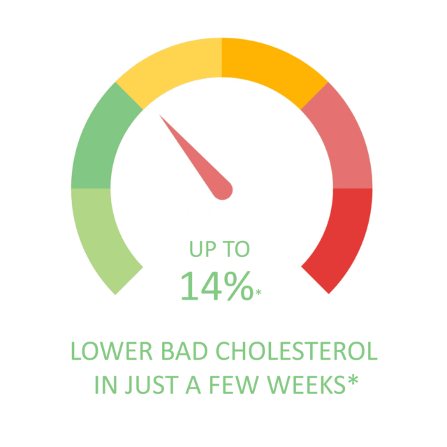 Studies have shown that a 10% reduction in blood cholesterol levels can reduce the risk of cardiovascular disease by 19%* to 54%*, depending on age.