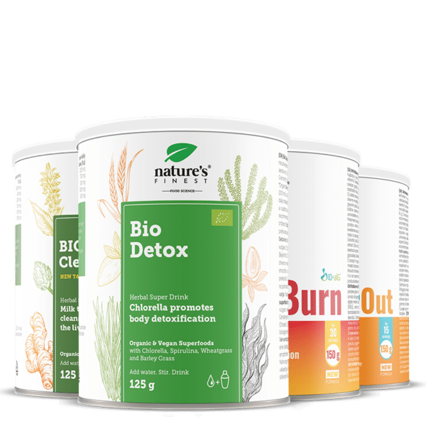 For the first 25 days, prepare freshly squeezed orange or lemon juice in the morning, mix it with a little water and add 1 teaspoon (5g) of DETOX green mixture. This awakens the body and stimulates the detoxification process. In the evening after dinner, mix 1 teaspoon of LIVER CLEANSE in a glass of water to stimulate a nighttime liver cleanse.