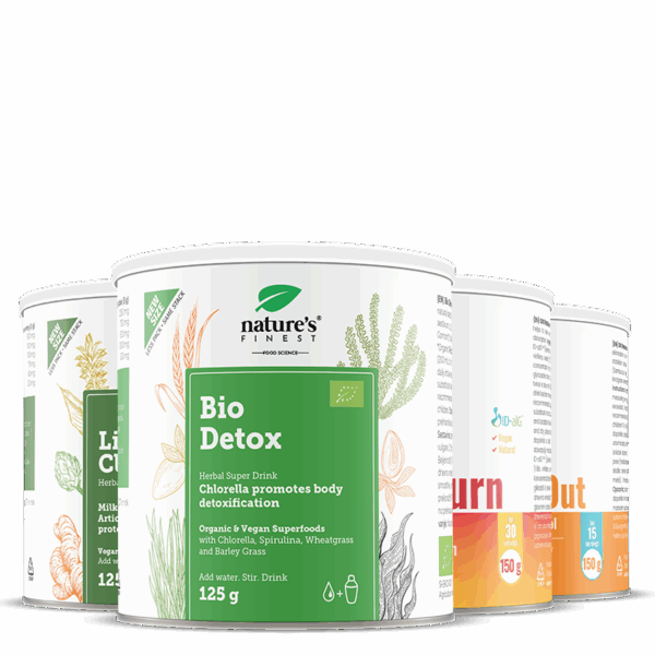 For the first 25 days, prepare freshly squeezed orange or lemon juice in the morning, mix it with a little water and add 1 teaspoon (5g) of DETOX green mixture. This awakens the body and stimulates the detoxification process. In the evening after dinner, mix 1 teaspoon of LIVER CLEANSE in a glass of water to stimulate a nighttime liver cleanse.