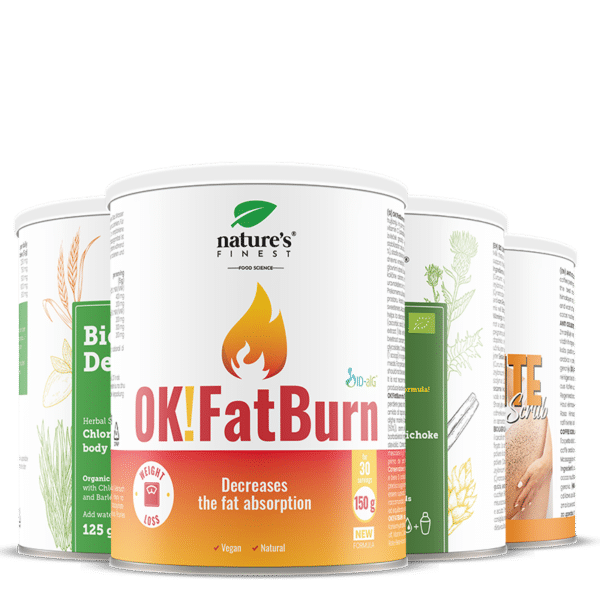 In the evening before dinner, stir in 1 scoop (5g) of OK! FATBURN drink in a glass of water, then after dinner stir 1 teaspoon of LIVER CLEANSE in a glass of water to stimulate liver cleansing overnight.