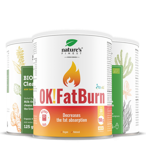 In the evening before dinner, stir in 1 scoop (5g) of OK! FATBURN drink in a glass of water, then after dinner stir 1 teaspoon of LIVER CLEANSE in a glass of water to stimulate liver cleansing overnight.