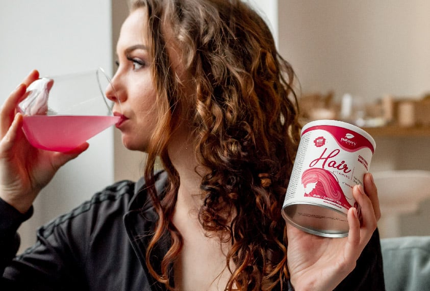 The recommended daily dose is 5 g (1 scoop). Mix in a glass of water and consume as soon as the powder dissolves. With 5 g of powder, you consume 450 µg (900 % NRV) of biotin and 100 mg (125% NRV) of vitamin C.