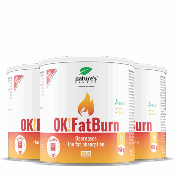 OK!Fatburn is an effective weight loss formula that inhibits carb and fat digestion enzymes with the power of ID-alG™. The triple-action formula contributes to normal energy-yielding metabolism⁴ with added power of L-tyrosine and L-Carnitine. Studies confirm significant weight loss correlated with fat mass. 1