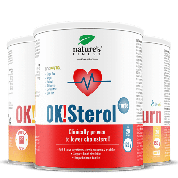 • OK!Sterol Forte: Patented Lipophytol® formulation, first results in as little as 6 minutes – Proven to reduce bad cholesterol levels naturally, supports heart health