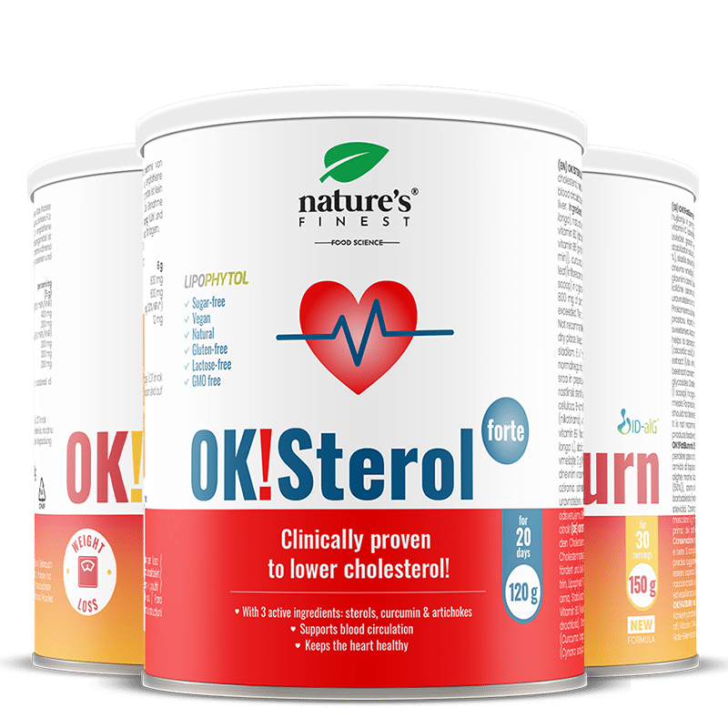 OK!Sterol Forte: Stir 1 scoop (3 g) twice a day into a glass of water. The beneficial effect is achieved with a daily intake of at least 800 mg of plant sterols.