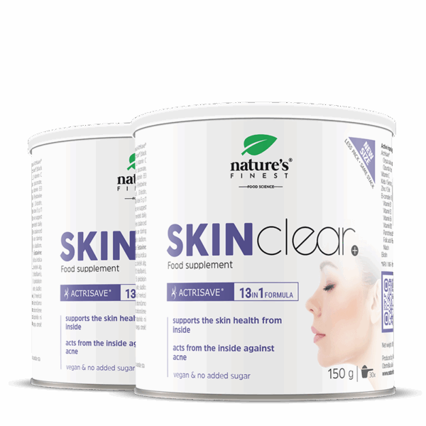 SKINclear+ contains 6 powerful ingredients including patented Actrisave™ that acts from inside against acne and supports skin health from inside. This formula contributes to the regulation of hormonal activity³, and helps improve physiological balance and moisturization of the skin4.