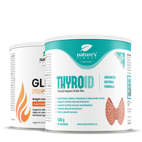 The package contains two products, both of which offer numerous benefits through carefully selected ingredients. Thyroid contributes to the normal thyroid function⁵ while GLP-1 ProBoost supports slimming⁷.